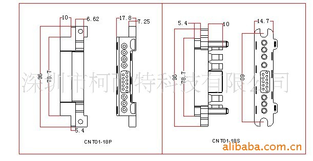 为满足用户各种电路的不同要求,CNT01系列机柜连接器各种规格的插针分别有:标准型、加长型和减短型可供选用。