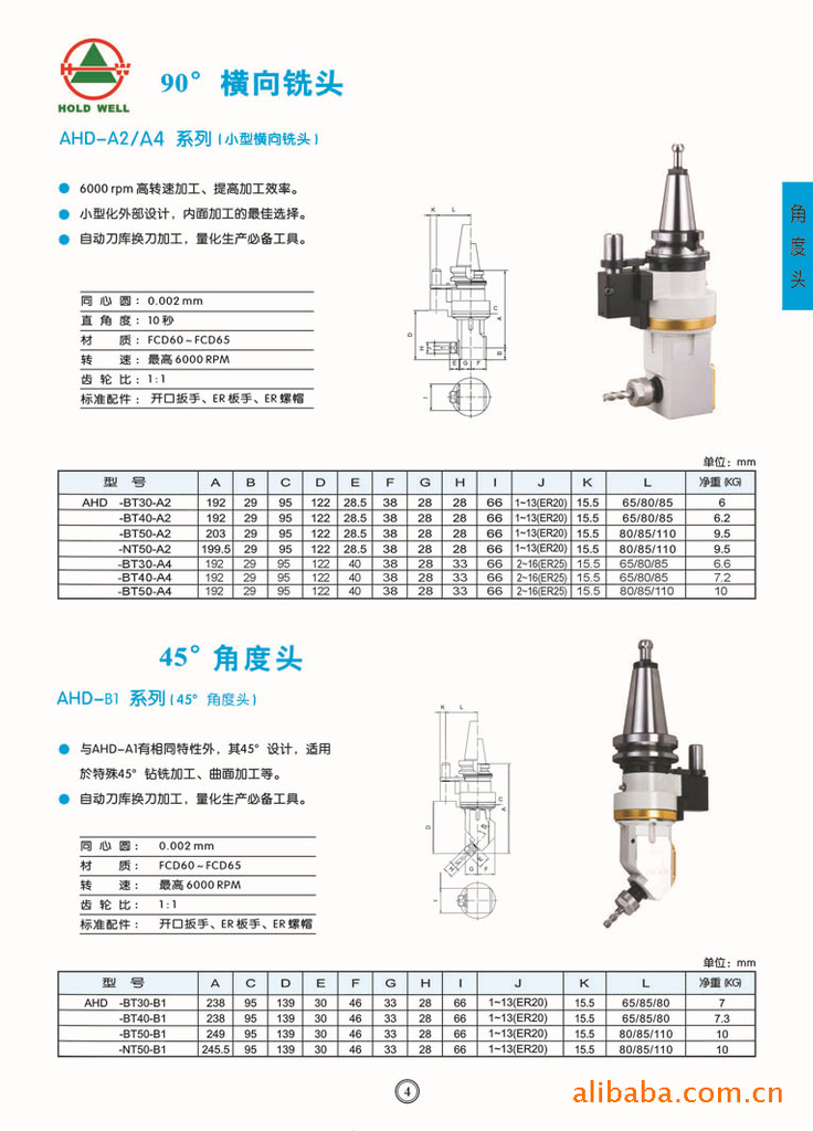1、不同的产品规格,在各种工况下都能达到最理想的切割状态。2、做工精良,装配精密,保证了角度头的精度。3、角度头内有油脂填充润滑,使用寿命更长。4、多种密封设计,更优化的轴承结构,采用滚针轴承,具有更好的承载力。5、角度头的整体化设计,具有高刚性的系统结构。6、并且新型的夹紧装置具有快速精确调整功能。7、每个角度头出厂时都经过严格的噪声和温升测试。