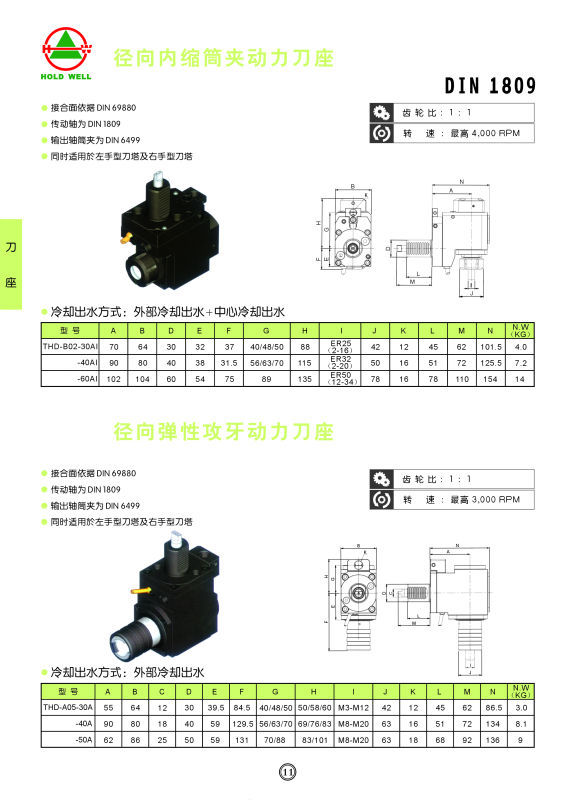 在此刀座上刀具可旋转进行铣削、钻、铰和攻丝等切削加工,可大大减少工件的装夹次数,提高生产效率。此类产品有轴向、径向等