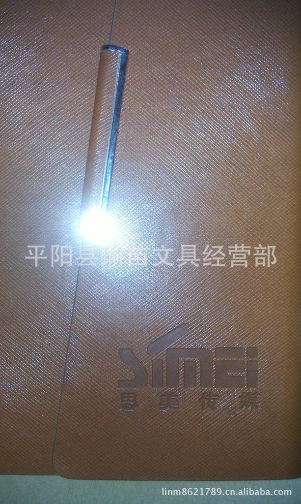======笔记本介绍:====== 笔记本(英文:Notebooks)是一种便携式的办公用品,造型简洁美观。装订方式:有线胶装、活页夹订装、裱装。其中活页夹装订方式的内页可自由取下替换。封面款式可由客户自行决定:普通革、PU革、变色革、仿皮、真皮等;封面LOGO采用烙印、压印、烫金、烫银、烫彩色金、CMYK印刷、热转印等,适合各类企业单位、事业机关做为广宣传、赠送礼品之用,在其精美高端的设计中无形的增值了自企业公司的形象。因此笔记本被各行各业广泛应用。