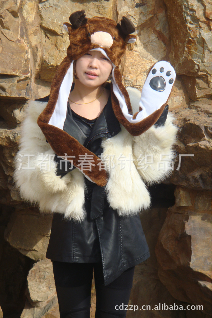 【名 称】:动物造型帽子; 【材 质】:PV绒布; 【规 格】:帽子内部50CM,本品为通用性帽子; 【包 装】:外套编织袋(内有防水薄膜); 【颜 色】:多款卡通形象。 【说 明】:高档短毛绒面料,pp棉填充,下巴处两个球球可交叉起来保暖效果更佳! 天冷了,冬天来了!今年冬天最热销产品--卡通动物帽子,真的卖得火了! 想拥有这么可爱的帽子吗?赶快来抢吧~款式非常多~厂家直接销售~ 【关于评价】 ●交易完成后,您有对本店做评价的权利,我们非常重视您的权利,力求得到您的好评; ●请买家购物后客观的给予评价,不要根据自己的心情随意对本店做出中评,差评.交 易过程或收到商品后如有任何不满和建议,一定要先通过站内信或旺旺联系店主,店 主会给予妥善解决,务必解决后再评价; ●如对收到商品有任何不满,又不联系店主进行解决就给予中评,差评的一律视为恶 意评价.本店将坚决投诉到底,以维护自身权利和形象. 各位买家朋友,请仔细查看商品的描述和图片,慎重出价,有疑问时,可留言询问,我一定会尽快答复,谢谢!