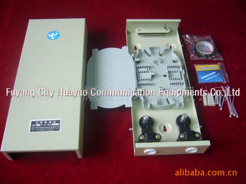 光缆终端盒具备光缆固定,熔接功能.用于光缆终端与小型光通信设备之间的终接和光路的分配.有12芯 24芯 48芯等等系列容量配置。墙挂式结构。