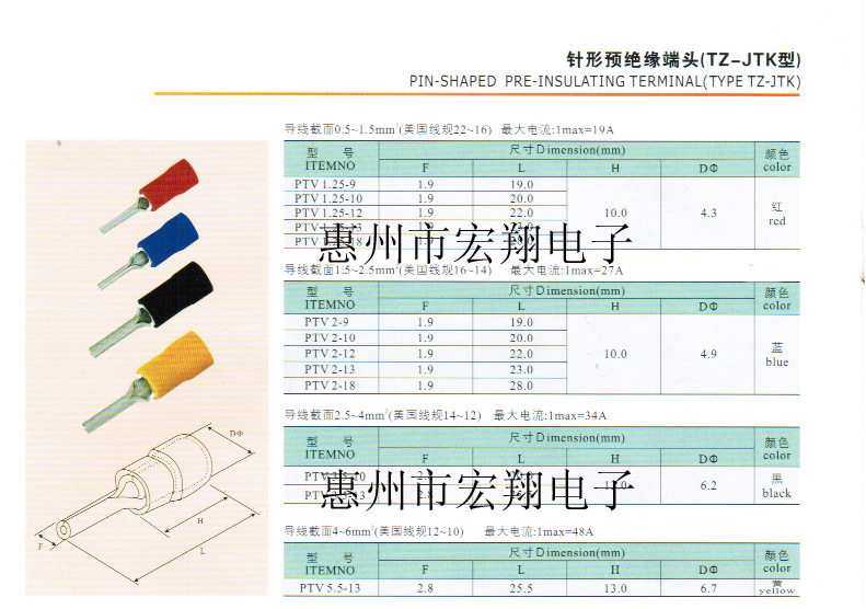 尺寸:PTV1.25-10 用于0.5-1.5平方线,针头直径为:1.9mm,总长:20mmPTV1.25-12 用于0.5-1.5平方线,针头直径为:1.9mm,总长:22mmPTV2-10 用于1.5-2.5平方线,针头直径为:1.9mm,总长:20mmPTV2-12 用于1.5-2.5平方线,针头直径为:1.9mm,总长:22mm