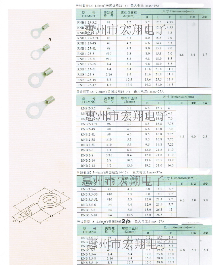 RNB2-4S,圆型预绝缘端头,冷压端子,TO型冷压裸端头