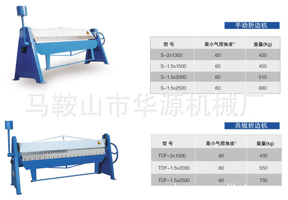 手动折边机 | 2.5×1300 | 2×1500 | 2×2000 | 1.5×2500 | 1.2×3200 |