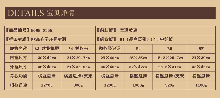 【产品尺寸】:A3 (营业执照30*42CM)