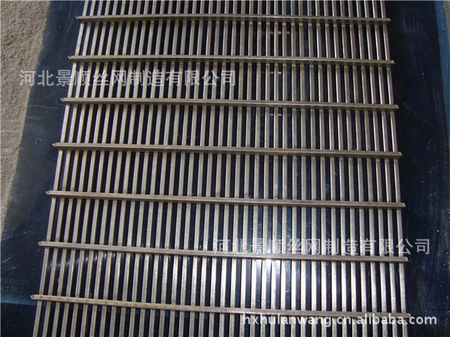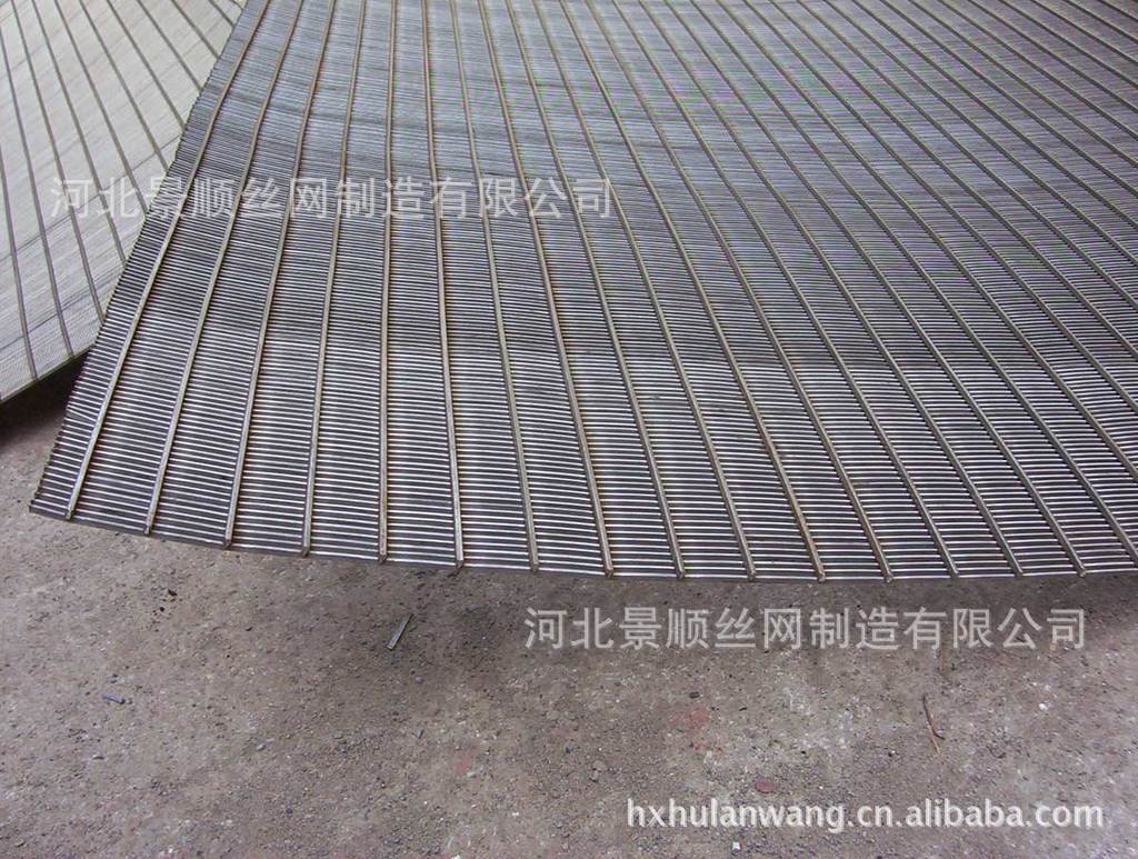 特点:易渗漏、耐磨、耐腐蚀。网丝断面为梯形。缝隙上窄下宽。是由不锈钢丝冷轧而成的筛条,支撑条采用自动化矿筛网生产设备焊接而成,筛缝均匀,焊接质量稳定,开孔率高,使用寿命长,有很高的强度,钢度和承载能力,可以做成各种形状的钢性筛分过滤装置。