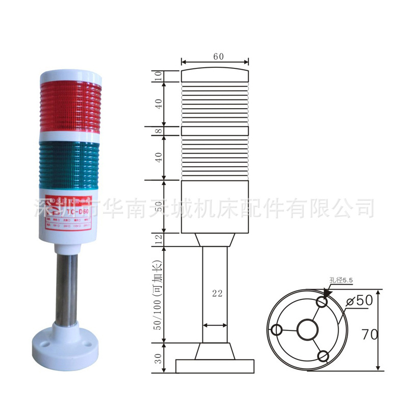 1)名称:LED两色警示灯直杆常亮DC24V蜂鸣