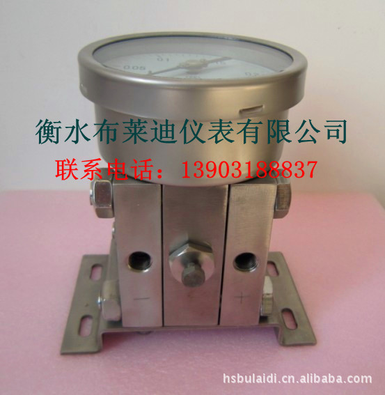 仪表采用双波纹管结构,即两只波纹管分别安装在“工”字型支架两侧的对称位置上。“工”字型之架的上下两端分别为活动端和固定端,中间由弹簧片相连接;两只波纹管与表壳上的低压接头相连,齿轮传动结构直接安装在支架的固定端。并通过拉杆与支架的活动端相连接;度盘则直接固定在齿轮传动机构上。 当施加不同压力(一般高压端高于低压端)时,两波纹管作用在活动支架上的力则不相等,使分别产生的位移,并带动齿轮传动机构传动并予放大,由指针偏转后指示的差压值。