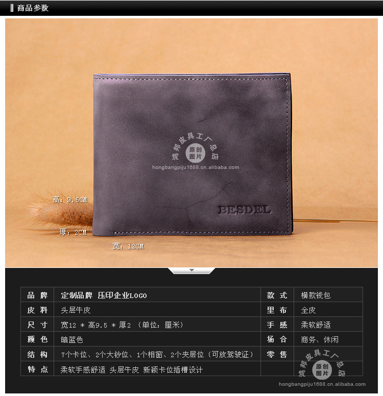 厂家订做 男士真皮钱包 全牛皮钱包 柔软舒适 商务休闲真皮钱包