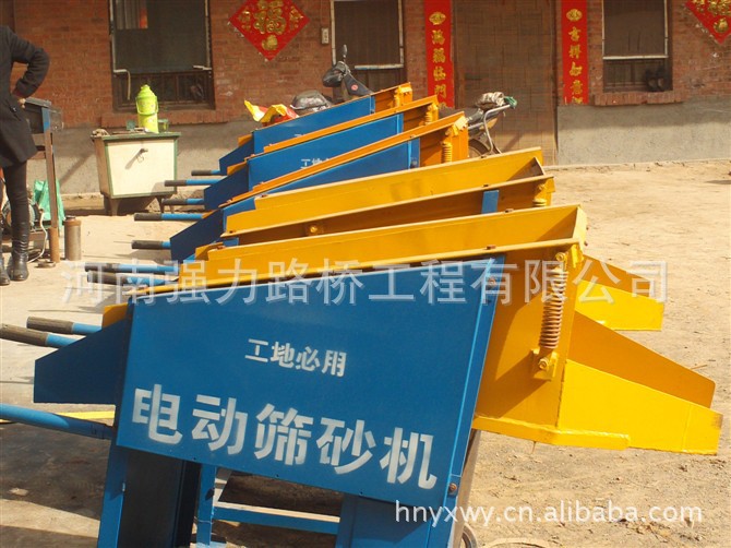 小型电动筛沙机主要优点:一、结构简单,工作量大,经久耐用,生产费用低,维修方便等。二、经加工的沙子、砂、石子等混料自动分离,是建筑、公路、水泥建筑预制件等厂家的理想用料。三、该机筛分速度快,每小时可筛沙15-30吨,筛沙机是适用于河道,沙场、水库,煤场,也可用于粮食、水渣、煤渣、矿石等一切分块料的筛选分离设备。四、本实用新型能自动完成挖沙、筛沙、将筛出的沙砾和细沙自动分开,操作简便,降低劳动强度。五、产品用途:适用于各种工程建筑行业筛沙、沙石分离。是建筑行业的好帮手