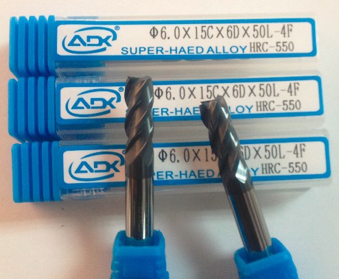 刀具特性:ADK-55钨钢涂层铣刀系列(高硬专用,适合高速雕铣及普通CNC HRC45-HRC55高硬55淬火模具钢加工)适合模具,铜电极之精细加工,表面光洁度高,成形精准,尤其适合高要求之陡斜面,内外R形面及曲面精加工,能获得相比平刀更高的表面精度!