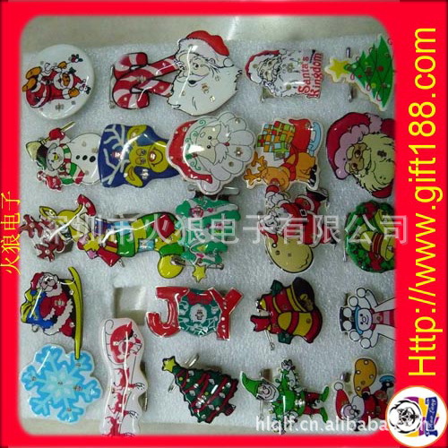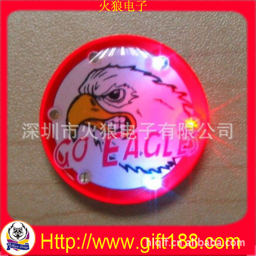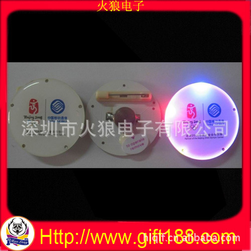 闪光磁力扣,闪光胸章,闪光胸扣,LED胸章的基板是0.8-1MM的线路板/PCB,板的正面可根据客人需求选择各种款式尺寸的精美LOGO和红/橙/黄/绿/蓝/白等不同灯色(灯的位置和数量及闪动方式也可以根据客人的需求来按排);背面是产品的电源盒和固定配件,电源盒的材料是红铜,内有两个钮扣电池,固定方式灵活多样:磁铁/蝴蝶扣/戒指环/挂绳/安全别针塑胶别针等;产品包装:有OPP袋,EVA板,吸塑,礼盒等。它是各种商务促销活动,各种节日Party,体育赛事,庆典活动的主要促销馈赠礼品;也是大众最青睐的精美小商品!