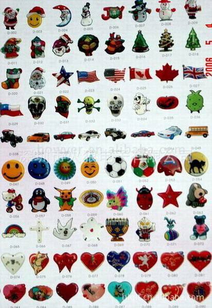 闪光磁力扣,表面可印任意图案,色彩艳丽,闪烁灯数和闪动方式可根据客人要求设计,内置电池,背面是安装磁铁或安全别针,是时尚装饰品,也是大型节日的欢庆礼品,包装可为吸塑卡纸或普通PP袋。外形可按客人LOGO开模打样量产。此种产品需安装电池,可固定在耳垂,衣服,鞋子等薄的物体上发出各色光芒,固定方法简单方便,摇摆震动时不会脱落,适用于各种娱乐场合(如夜总会,卡拉OK)等服务行业.大型庆典活动,可为客户专业设计外型及图案。