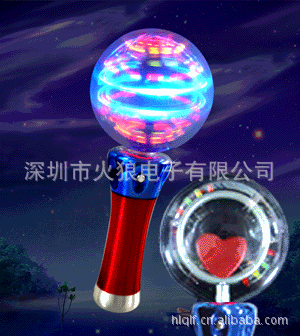 LED灯可供选择的颜色有:红,黄,橙,绿,蓝,粉红,翠绿,白色等,色彩鲜艳,光彩夺目。发光旋转球,发光棒子,深圳市火狼电子厂是一家专业生产发光转球的厂家,发光旋转球中有两颗红灯,一颗黄灯,一颗蓝灯,一颗绿灯,通过不停旋转变换出七彩的效果,旋转部分的小公仔可以根据客户的要求开模,比如史迪仔、星级宝贝、小浣熊、乔巴等各种可爱的小公仔。灯光部分可以根据客户的要求定制不同的颜色,只要你想的到,我们就可以做到。是小朋友们非常喜爱的玩具,也是促销礼品发光礼品的最佳选择之一。欢迎广大客户前来咨询订购!