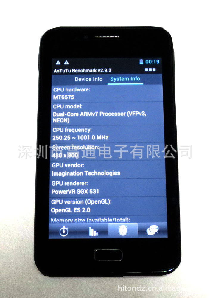 1.CPU:MediaTek MT6575 Cortex-A9 1.0GHz;