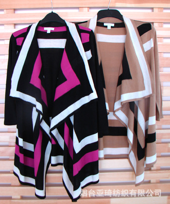 我们工厂主做:ZARA、H&M、C&A、GAP、NEXT、A&F等品牌,此款衣衣是外贸原单货。外贸原单开衫,前片立体感非常强,无论您是瘦mm还是 胖mm都可以让您穿的舒适自如,而且非常显瘦哦。胸围没有太大的限制,穿上都很美。衣服无论是从底色还是织线、纹路花型都很有质感,拼接处处理的非常精致,简洁大方又不失时尚。我们工厂所有毛衣都是采用最先进的电脑横机制作出来的,我们是工厂直销所以价格非常的优惠。