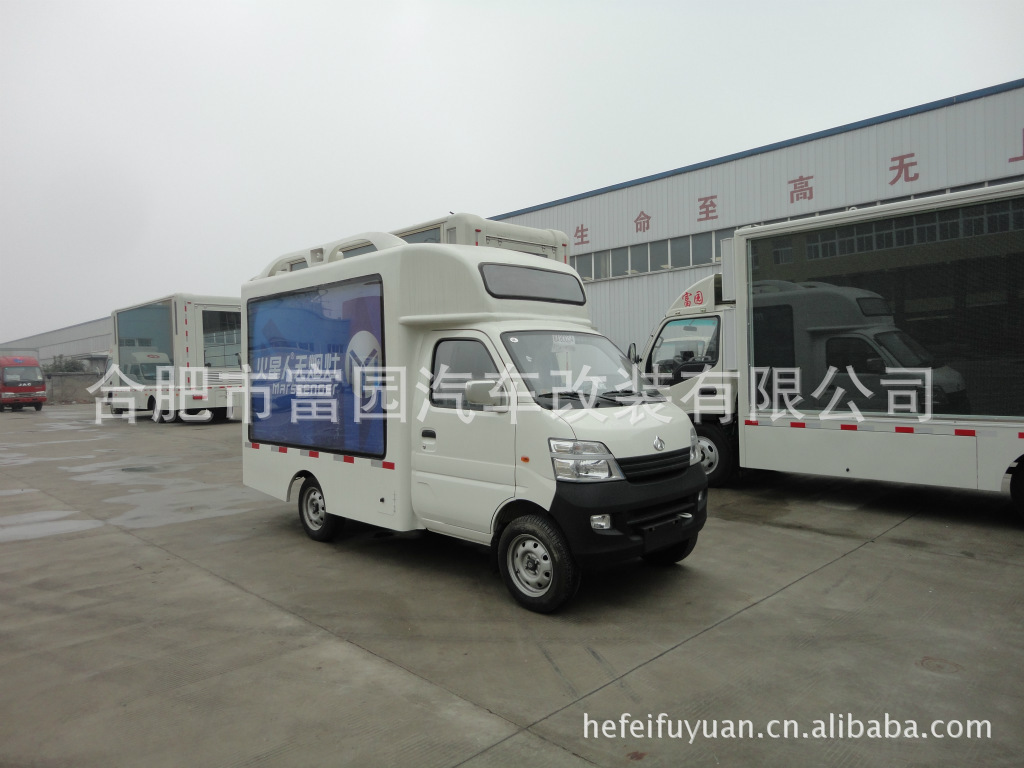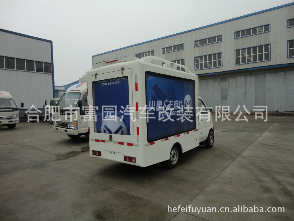 该车为汽车与电子信息技术相结合的产品,它能在任何需要宣传的地方实时播放图、文、声、像并茂的广告。它是一种新型广告载体,广泛用于户外广告显示,深入生活各个领域。它具有直观、形象、信息含量大、视觉效果好、机动灵活的特点。