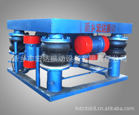 采用橡胶弹簧和6台―8台振动电机组合。具有上下,左右,前后的三维振实效果。并且具有多结构支撑,结构牢固,密封性好,性能可靠,操作简便,振动频率可调,噪声低,生产效率高等特点。
