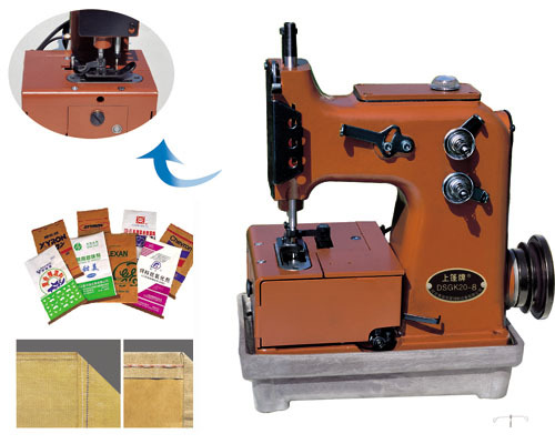 ◆DSGK20-3型 自动加油制袋缝纫机的特点: DSGK20系列制袋缝纫机是一款高速缝封缝纫机。该机主要部件采用20cr材料精密加工而成,加上合理的设计结构,使机器的整体质量得以提高。由于该机采用全封闭、全自动供油系统,使机器运行时的噪音平稳度都达到最理想的状态。经久耐用,对维修保养带来很大方便。 ◆Characteristics: DSGK20 series sack-making sewing machine is a kind of high speed seaming sewing machine.Main parts of the machine are made of 20cr material through precision processing.This machine has reasonable design structure,which improve the overall quality.It adopts fully-enclosed and fulli-automatic oil-supply system,which could make the noise smoothness at ideal situation when the machine runs.It is durable and is convent for maintenancs. 使用范围 Application: 该产品是双线链式线迹制袋缝纫机,专供粮食、饲料、化工、制糖、水泥、建筑安全网、蔬菜包装袋、港口、码头等企业的包装物制袋缝纫之用,配装在自动制袋机上使用效果更好。 The double-thread chain stitch bag making aewing machine is only for sewing container bag of enterprises of grain,feed, chemical,sugar manufacturing,cement,construction safety netting,vegetable container bag and port and dock. It will have better use result if it is assembled on automatic bag making sewing machine.