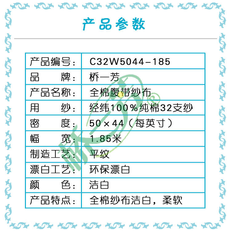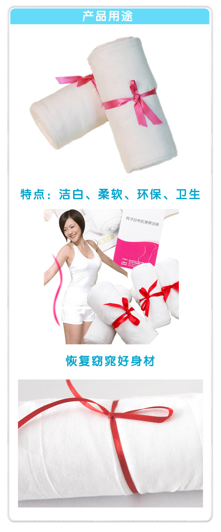 纯棉32支50*44单层漂白产后束腹