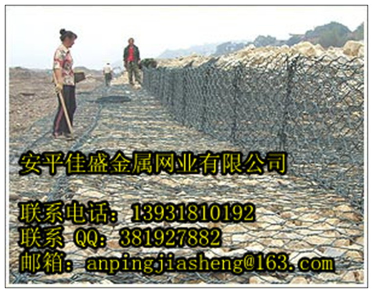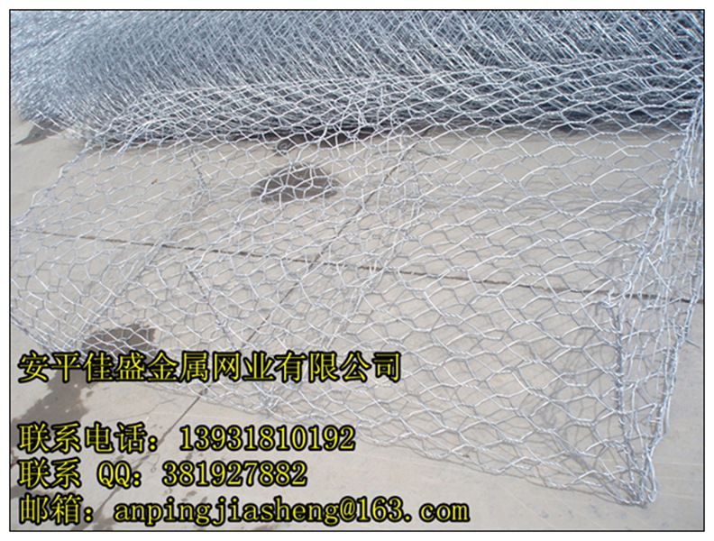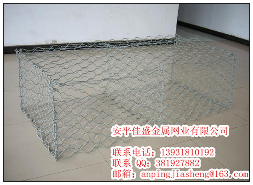 1、首先将铁丝用机器进行拧编成网状,再根据客户要求进行裁片处理 2、所裁网片,通过人工进行边缘固定以及组装等操作,每片均需人工一一审核,保证产品质量。 3、根据客户要求进行机器打包,方便整洁,实用 4、操作特点:直接装入石料,即可使用 5、网石笼施工 网笼是由工厂按设计尺寸规格加工成双扭结六角形网目后,现场拼装成箱式网笼或垫式网笼,网笼施工主要是立架、装料、砌平、封口等。 详细步骤: (1)将网笼错缝摆设就位,避免出现纵向贯通缝;