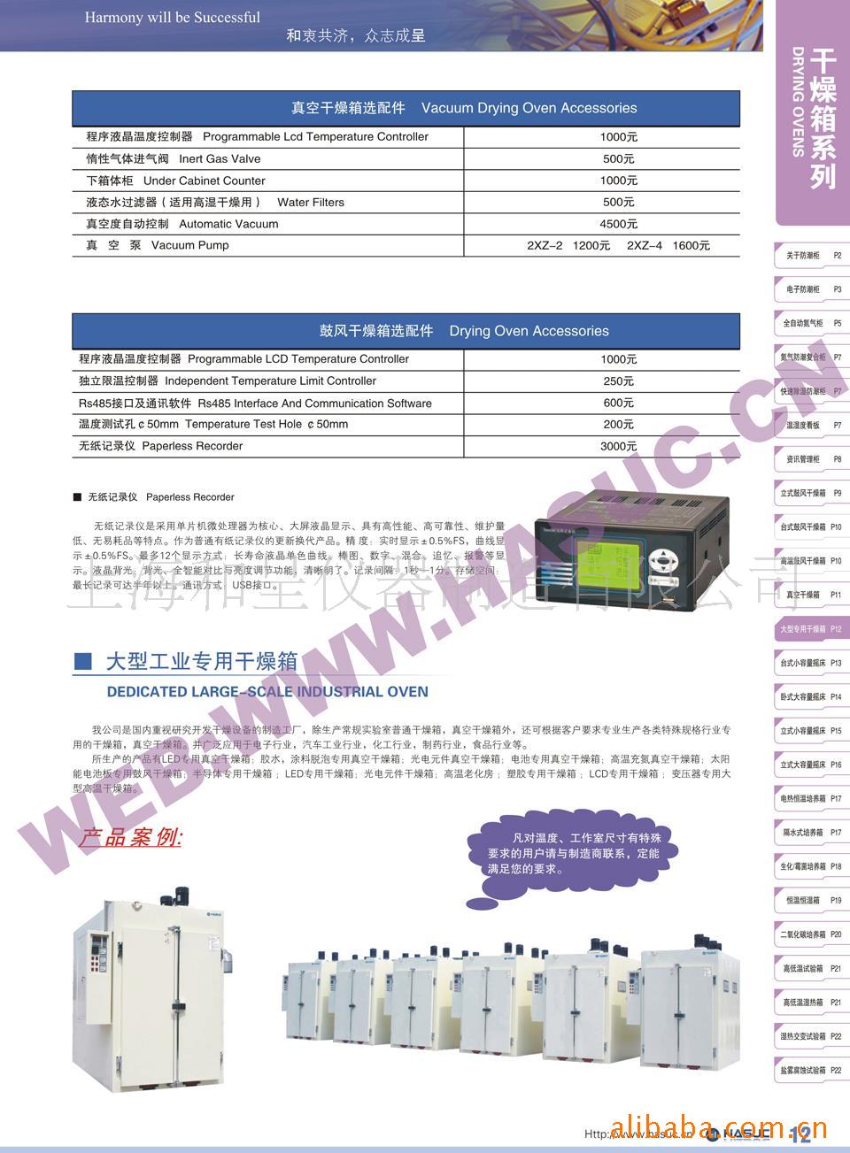 所生产的产品有LED专用真空干燥箱;胶水,涂料脱泡专用真空干燥箱;光电元件真空干燥箱;电池专用真空干燥箱;高温充氮真空干燥箱;太阳能电池板专用鼓风干燥箱;半导体专用干燥箱;LED专用干燥箱;光电元件干燥箱;高温老化房;塑胶专用双开门干燥箱;LCD专用热干燥箱;变压器专用大型高温干燥箱