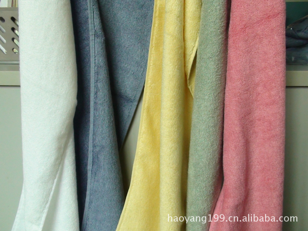 竹纤维毛巾是以优质的天然竹子为原料,经特殊的高科技工艺处理,把竹子中的纤维素提取出来,再经制胶、纺丝等工序而制造出的再生纤维素纤维。不含任何化学添加剂,因具有良好的透气性、瞬间吸水性、较强的耐磨性、良好的染色性等功能特性,被人们称赞为“会呼吸的生态家纺” 、“纤维皇后”。 一、抗菌抑菌功能:将原先培植好的大肠杆菌、葡萄球菌等有害细菌,放细菌在棉、木纤维制品中能够大量繁衍,在竹纤维面料布上一小时,细菌消失了48%,24小时后被杀死75%。 二、超强保健功能: 竹纤维中负离子浓度高达 6000 个 / 立方厘米,相当于郊外田野的负离子浓度含量,使人体倍感清新舒适。 三、吸湿放湿功能:竹纤维的多孔结构,具有良好的吸湿、放湿功能,从而自动调节人体湿度平衡。 四、除臭吸附功能:竹纤维内部特殊的超细微孔结构使其具有强劲的吸附能力,能吸附空气中甲醛、苯、甲苯、氨等有害物质,并消除不良异味。 五、蓄热保暖功能:竹纤维远红外发射率高达 0.87,蓄热保暖大大优于传统纤维面料。 六、柔软舒适功能: 竹纤维具有单位细度细、手感柔软;白度好、色彩亮丽;韧性及耐磨性强,有独特的回弹性;有较强的纵向和横向强度、且稳定均一,悬垂性佳。
