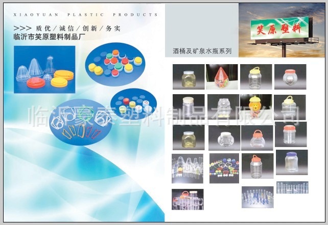 公司从成立以来,专业生产各种聚脂类产品:PET易拉罐、塑料易拉罐,塑料易拉罐封口机,透明塑料瓶,酒桶,花生油桶,色拉油桶,矿泉水瓶,可口可乐瓶,农药瓶,管坯,瓶盖,机油桶等。 另外,公司还定做各种异型产品,代上机器,模具制作等。 公司本着诚信、认真、热情、积极的态度,以最优惠的价格,一流的质量,完善的服务,热情欢迎新老客户前来洽谈业务,共创美好明天。