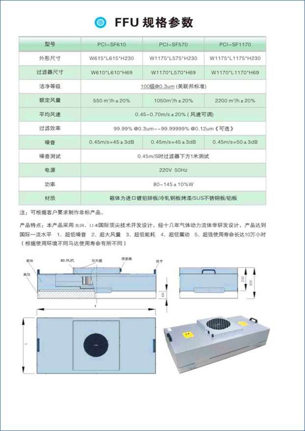 ffu出厂前均按美国联邦标准(209E)用激光粒子计数器逐台扫描检测,确保质量;