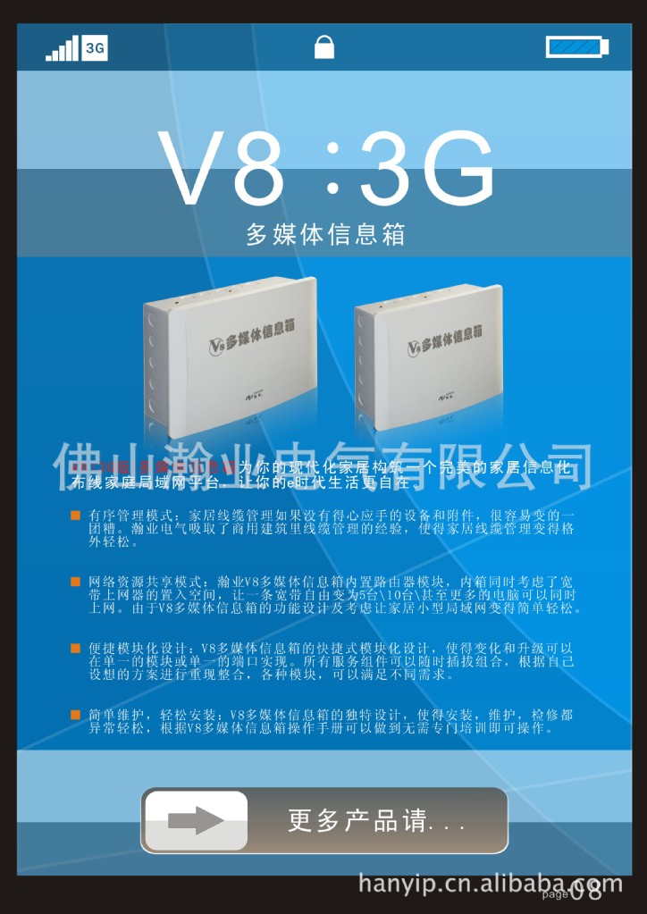 佛山瀚业电气有限公司2010年最新配电箱系列-V8多媒体信息箱具有俊朗的外观、一流的用料以及安装方便等优点。