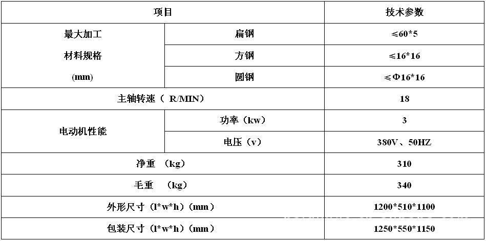 本机是一种热压金属为鱼尾状的型材加工设备,采用摆线针轮减速机。通过该机所带的模具可以对方型、圆型、扁型、金属型材制作出三种不同的鱼尾状构件,广泛应用于铁艺装饰行业。