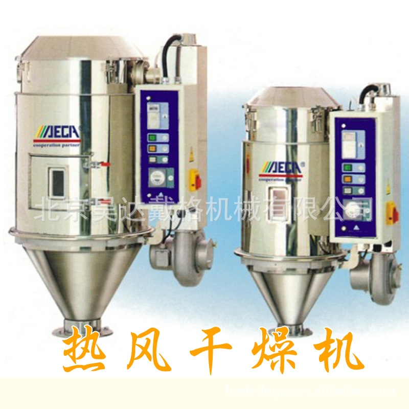 昊达戴格热风干燥机与原料接触的地方全部采用304不锈钢材质制成。配备入料口盖,方便吸料机的安裝。采用“热风下吹式和空气旋风排气”原理,保证干燥效果均匀一致。选择配备时间计时器,用于自动启动和停止的时间设定。可调节式过热安全保护装置。标准外接式主电源。符合CE安全标准的电路设计。采用高性能铝壳风机,散热型好,高温环境耐用性强。装有过热保护,当机体温度超过70度时,风机自动停机保护。采用施耐德电器元件使整机性能更加稳定。独特的伞型设计,热风更加均匀,干燥效果好。可分单出口、双出口、四出口等选择方便。独特的风料比例设计,使物料传送系统更加节能。碳钢材料制作,表面喷塑处理,美观耐用。