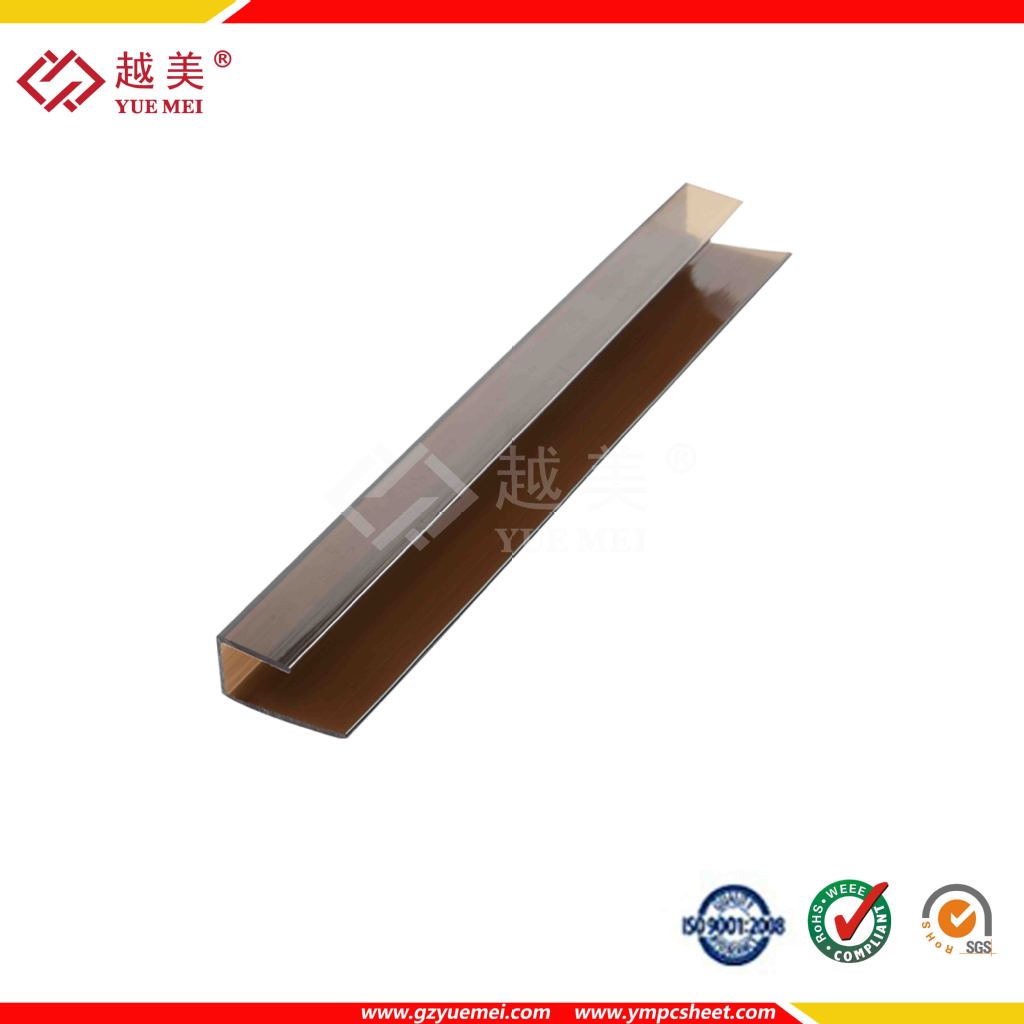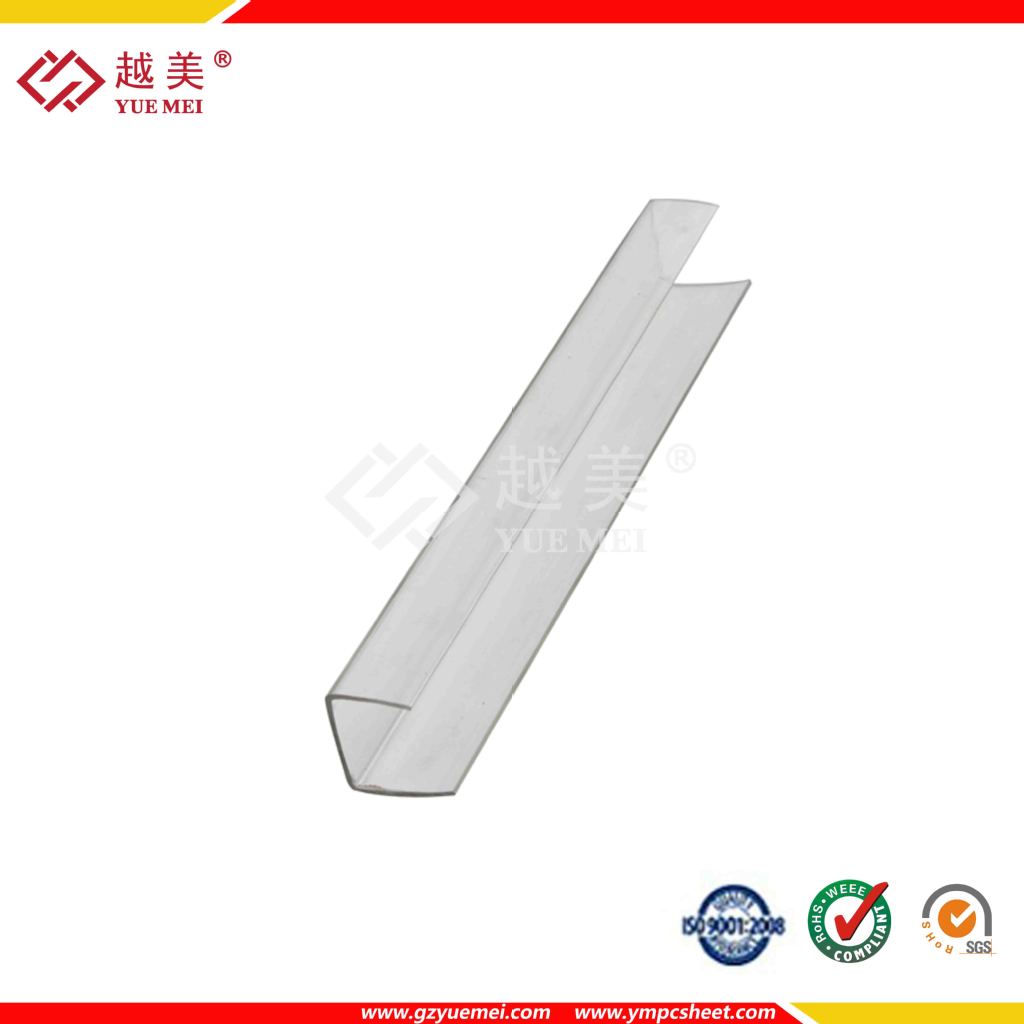PC-U收边:主要用途是:用于PC阳光板和PC耐力板安装过程中的连接和防尘。