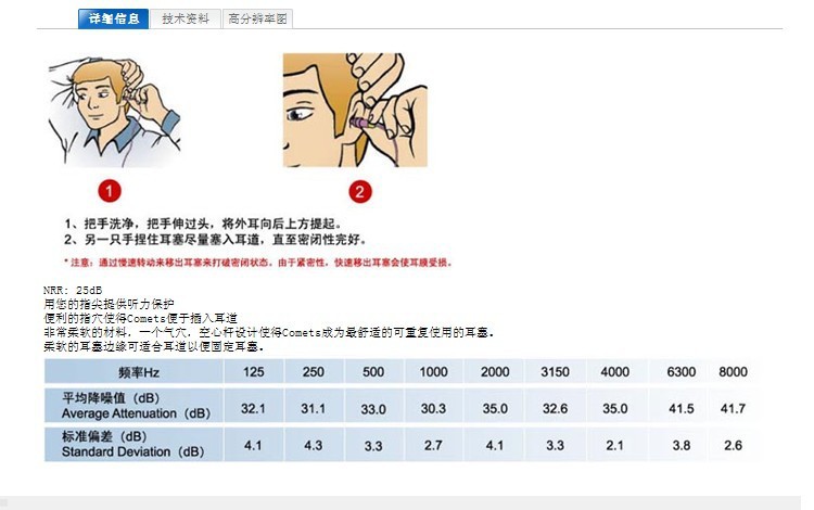 符合标准: ANSI S3.19-1974 产品包装: 1对/袋 200副/箱