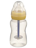 我司奶瓶采用德国进口的一级抗水解性能的耐高温材料—高硼硅玻璃,它不含双酚A,不含荷尔蒙干扰物质,无毒无味;且该材质为中性玻璃,遇酸性或碱性物质或者高温消毒时也不会释放出有害物质,安全环保,可确保婴儿健康;它还可耐600多度的高温,可适应剧烈的冷热温差变化而不会爆裂,其安全性能好;瓶身透明度极高,反复使用也不会变色,而且内外壁坚硬平滑,无接缝,无模印,不易污垢附着,易于清洗。