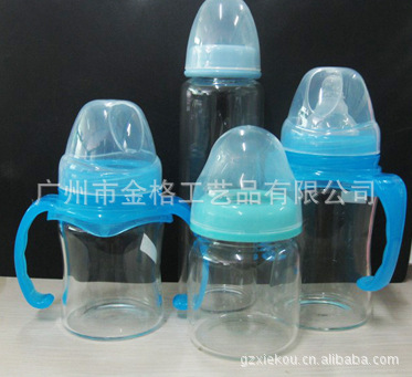 广州金格玻璃工艺品有限公司专业机器生产玻璃奶瓶,高硼硅玻璃奶瓶(即晶钻玻璃奶瓶)质量上乘,价格优惠,厂家定做!