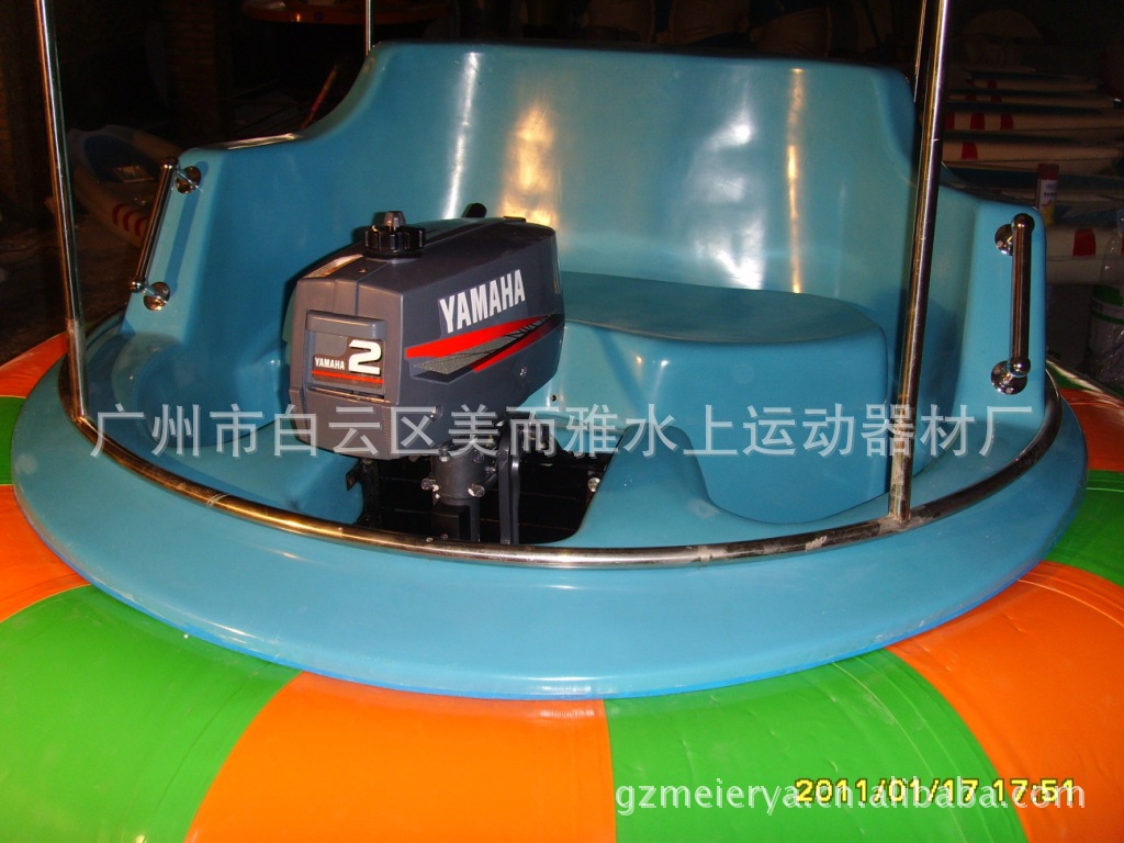 碰碰船,分为电动碰碰船和机动碰碰船。相当受欢迎的一个水上项目游乐设施。 水上碰碰船可进行水上娱乐活动,如同水上的碰碰车,娱乐时充满新奇与刺激,并可为您带来丰厚的收益本产品船体由防撞轮胎和玻璃钢制成,可抗老化.防腐蚀,使用寿命长. 本产品分为电动碰碰船和机动碰碰船,电动碰碰船采用先进电动系统,电力充足,可连续使用8小时。发动机是日本原装产品,动力强劲.产品设计合理,即使在娱乐时激烈碰装也决不翻船,安全性能高. 名称 | 外径 (m) | 管径 (m) | 吃水 (m) | 功率 | 行速(km/h) | 自重(kg) | 成员(个) | 单价(RMB) | 备注 | 机动碰碰船 | 1.9 | 0.42 | 0.2 | 2HP | 15 | 71 | 2 | | 国产动力 | 机动碰碰船 | 1.9 | 0.42 | 0.2 | 2HP | 15 | 71 | 2 | | YAMAHA动力 | 电动碰碰船 | 1.9 | 0.42 | 0.2 | 500W | 10 | 87 | 2 | | | | | | | | | | | | | 本公司产品特点及优势: | 1、全部采用进口游艇专用气艇布料0.9T1000D/PVC,气密性、耐磨性极好、使用寿命长。 | | | 2、采用进口铜气阀,方便、安全、使用寿命高、 可 靠。 | | | | | | | 3、所有粘接部位全部采用进口胶水粘接,剥离强度以及耐高温、耐水解、抗紫外线等性能均大大优于国产胶水,即使在阳光暴晒下,气艇连接部位牢固性能得到充分保证。 | 4、进口材料色牢度高、布面颜色历久如新,进口专用耐磨双色护舷,使船体经久耐用。 | | |