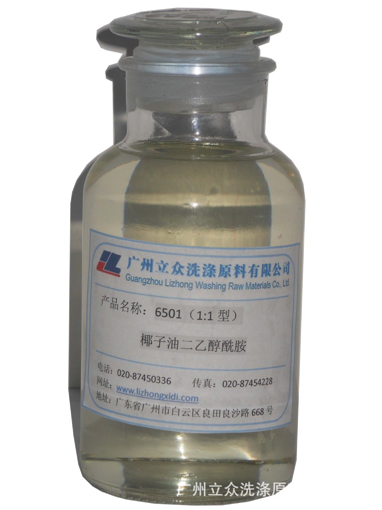 广州立众洗涤原料有限公司专业生产非离子表面活性剂椰油基二乙醇胺6501。立众化工6501采用精炼的优质进口椰子油、棕榈仁油为原料,以先进设备经一步法工艺生产,色泽浅,气味小,在洗护产品中正常使用不会影响产品气味。6501具有一定的调理作用和稳定香精的作用,广泛用于餐具洗涤、香波、沐浴露、香皂等产品,内含甘油,对皮肤有保温作用,并按需要调整碳链发布、二乙醇胺比例,以提供用户自己的专用品种。广州立众洗涤原料有限公司是椰油基二乙醇酰胺6501广东最大质量最好的生产厂家。现面向全国招募供应商。