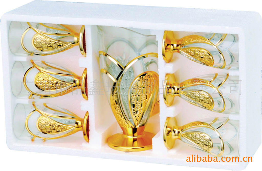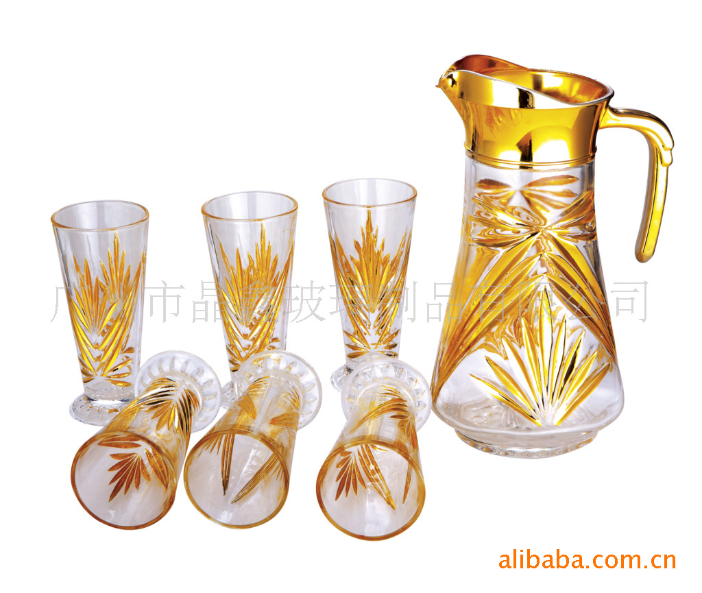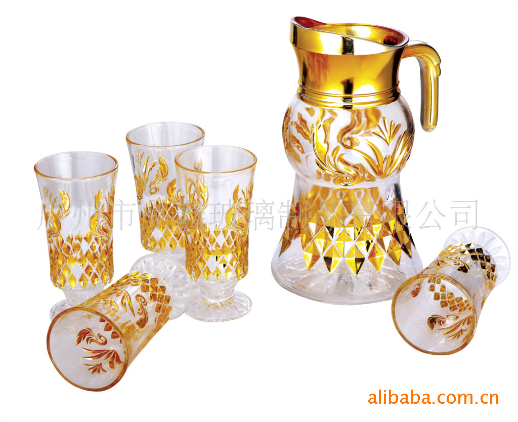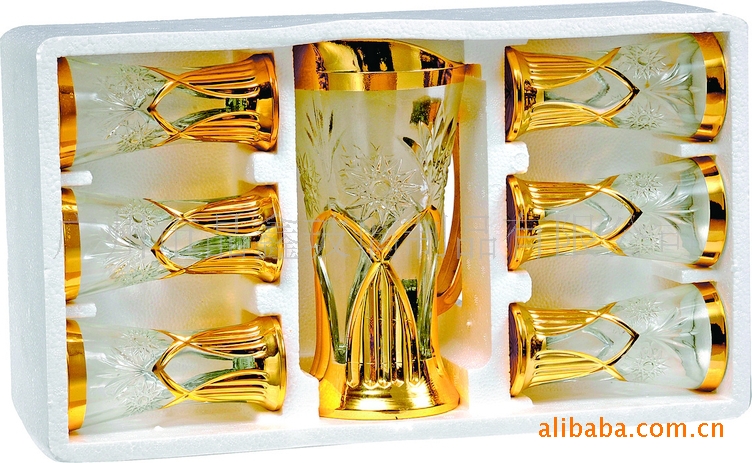工艺电镀烫金描金彩绘玻璃水/酒杯壶 刻杯壶 玻璃工艺品 K04