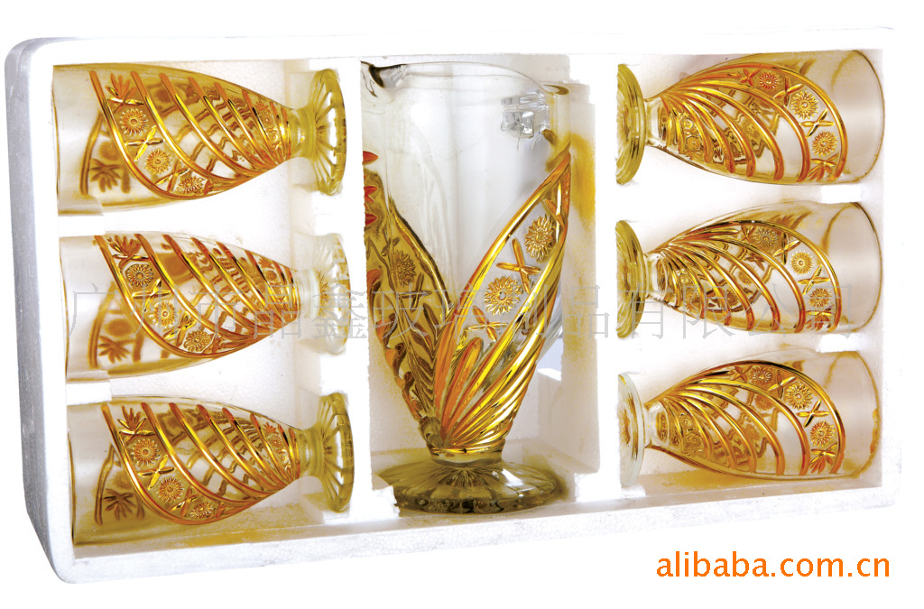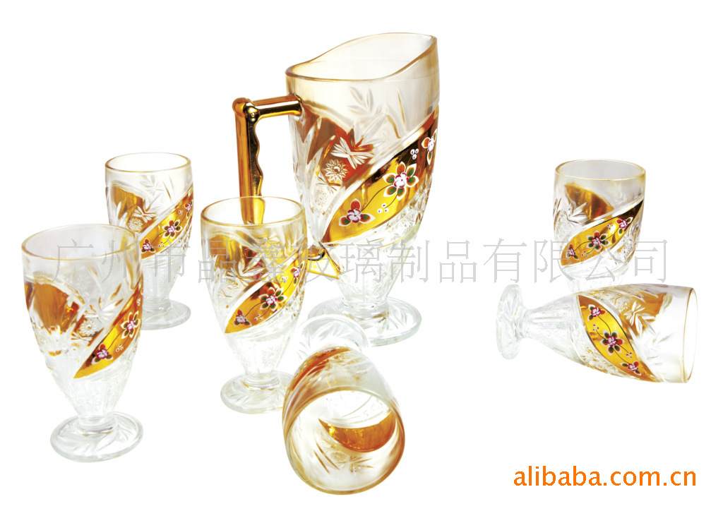 工艺电镀烫金描金彩绘玻璃水/酒杯壶 刻杯壶 玻璃工艺品 K01