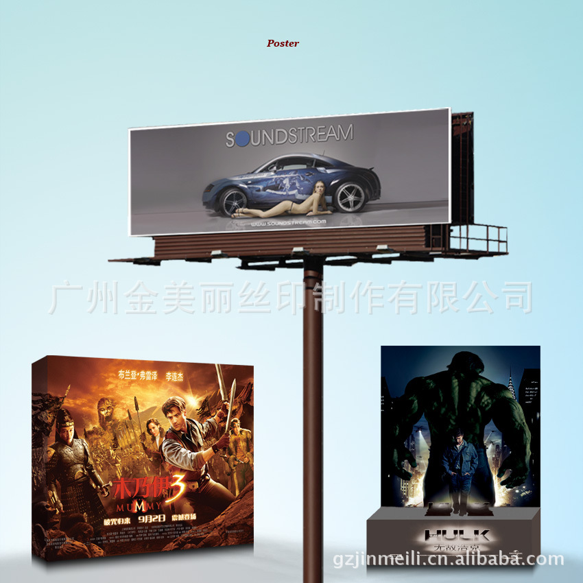 本公司成立于1999年,是一家大型的户内外广告制作厂家,凭着十五年的专业知识,开拓国内外广告平台,公司当前主要业务包括:户内外广告画丝印/喷绘等制作,例如:喷绘,丝印候车亭灯箱画、不干胶;广告横幅、条幅;KT板吊牌、展板;挂画、三角挂画架;人像立牌、桌面立牌;X展架,促销台,拉网促销台,拉网展架;堆头(注塑堆头)、注塑货架;食品饮料陈列架,商场货架、展示架,资料架;刀旗、水滴旗,太阳伞,帐篷;冰箱贴纸、窗贴,地贴、单孔透窗贴,大型海报;超薄灯箱、三面旋转灯箱;亚克力(有机玻璃)工艺品等一系列广告产品。我司生产设备先进,技术力量雄厚,产品质量过硬,售后服务及时,与多家大型企业建立了长期良好的合作关系。欢迎广大新老客户前来洽谈业务。