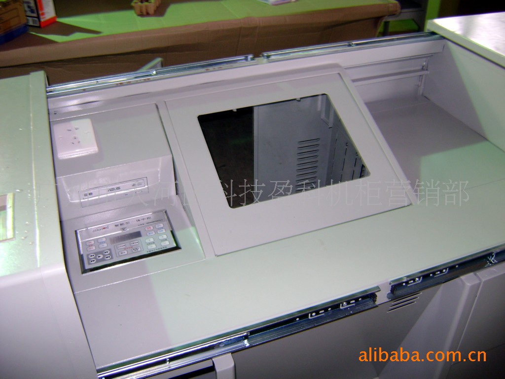 结 构:组焊成型,操作方便,美观大方,四周装有防水密封胶条,可以更好的保护显示器,盖门更加人性化设计,采取左右推拉方式,解决了以往盖门沉重,能自由往两边进行推拉,合上看起来非常美观,还起到防尘的作用,而打开后两边平台可以放教案、实验仪器和手提电脑等,能很好地满足现代教师的需求。