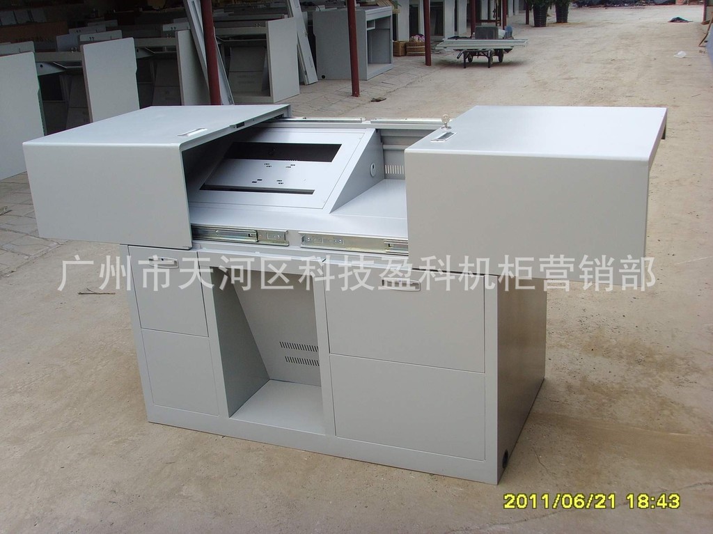 结 构: 组焊成型,操作方便,美观大方,四周装有防水密封胶条,可以更好的保护显示器,盖门更加人性化设计,采取左右推拉方式,解决了以往盖门沉重, 能自由往两边进行推拉,合上看起来非常美观,还起到防尘的作用,而打开后两边平台可以放教案、实验仪器和手提电脑等,能很好地满足现代教师的需求。