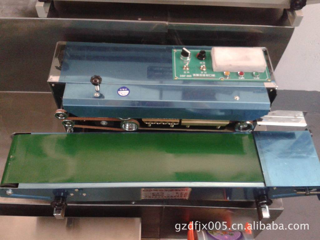连续封口机:将塑料包装袋连续不断地由传送→送进→封口→冷却→滚花或印字。具有连续封口效率高、封口质量好、结构合理、操作方便等特点。可与各种包装流水线配合使用,其封口长度不受限制,并适应于各种不同材料的塑料薄膜袋。广泛应用于食品、医药、日用品、土特产、化工产品、电子产品、蔬菜种子等部门。它是工厂、商店及服务性行业批量适用的最佳封口设备。