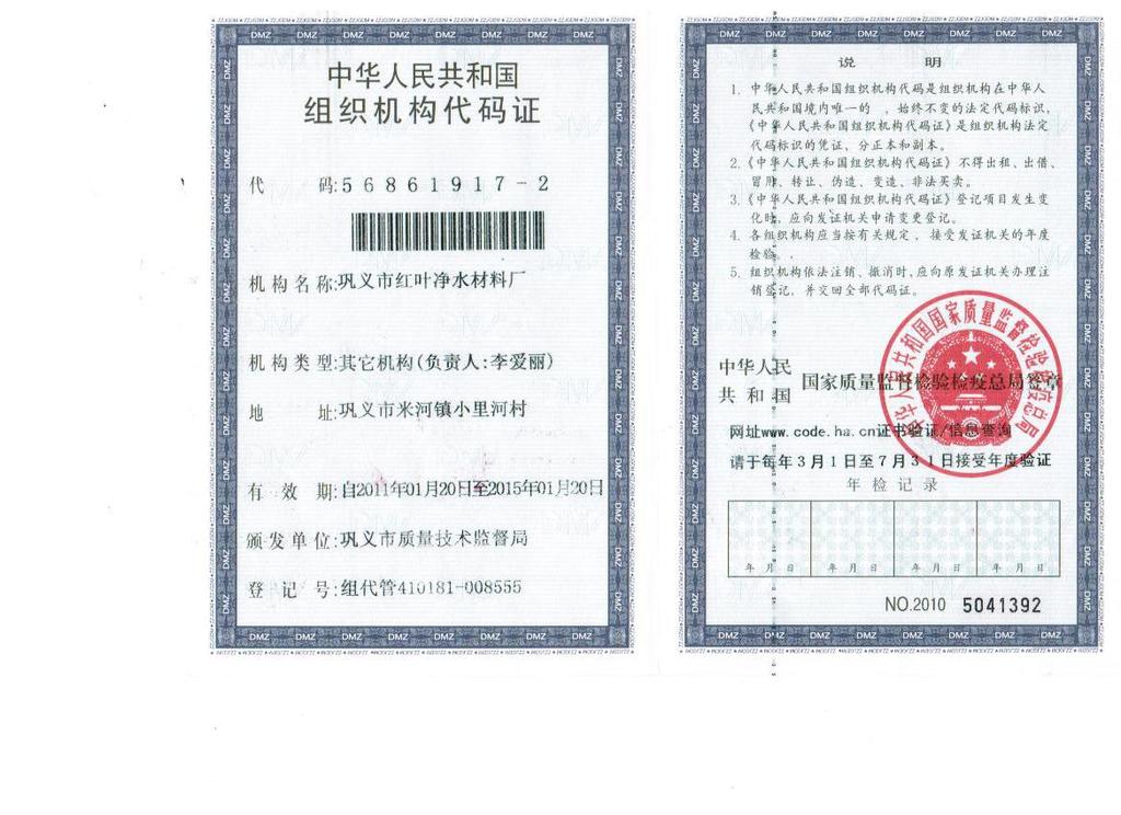 1. 巩义红叶水处理材料厂出售的任何一种产品,一星期之后会跟踪回访,