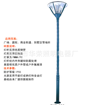灯杆:Q235钢材,经热浸锌处理,表面聚脂粉末静电喷涂。