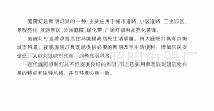 灯体:铸铝,表面喷进口聚脂塑粉,具有防紫外线和耐侯性佳的特性。