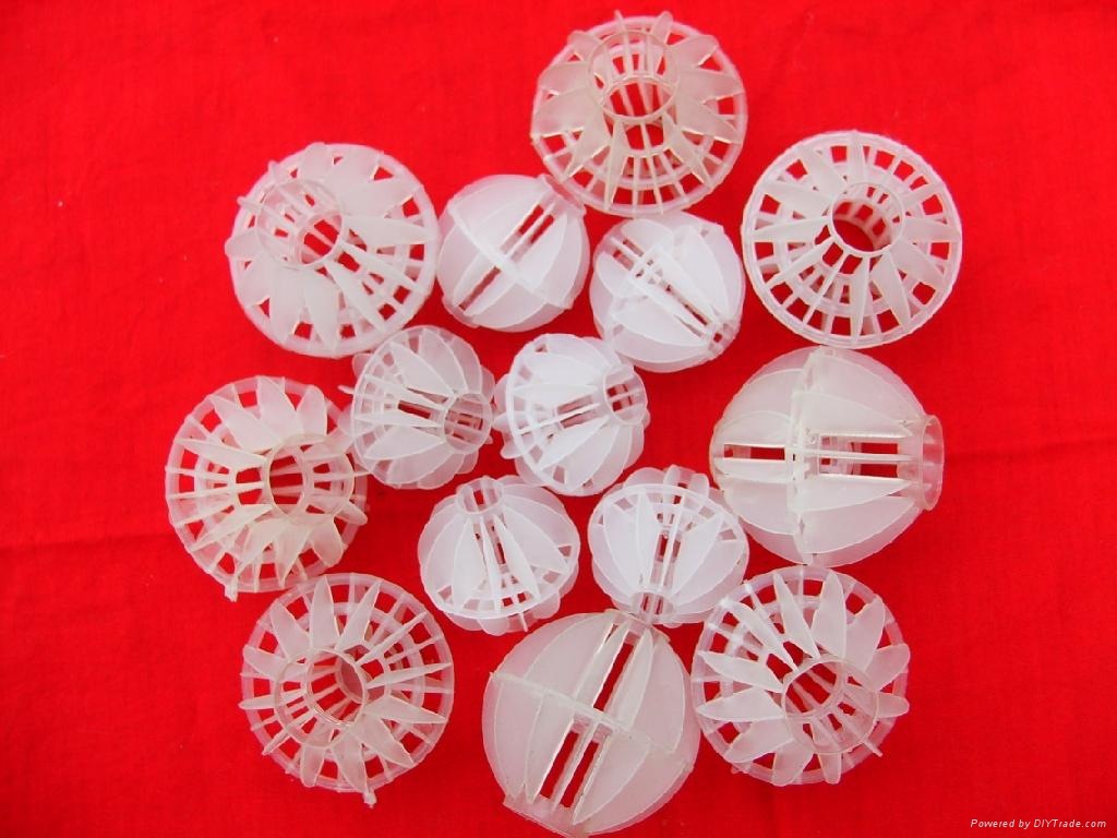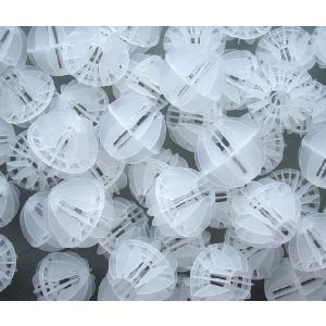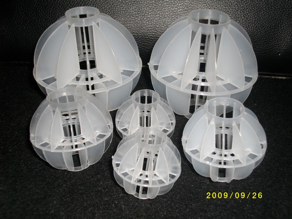 多面空心球是由两个半球合成一个球形,每个半球由若干个半扇形叶片组成,上下叶片相互错开排列。具有气速高、叶片多、阻力小、操作弹性大、比表面积大等特点,可充分解决气液交换。应用于除氯气、除氧气、除二氧化碳气等环保设备中。 多面空心球是水处理设备中广泛采用的一种新型高效塔器填料,其重量轻、强度高、耐高温、耐腐蚀、表面亲水性能好、风阻小、电耗少。经国内电力、化工、造纸、环保等行业在脱碳、脱碳酸、油水分离、海水淡化、纯水、废水处理等装置中使用。 一般应用:工业尾气净化;污水处理;烟气脱硫,除尘;酸雾净化;废气回收;海水淡化;其他水处理装置; 多面空心球是由两个半球合成一个球形,每个半球由若干个半扇形叶片组成,上下叶片相互错开排列。具有气速高、叶片多、阻力小、操作弹性大、比表面积大等特点,可充分解决气液交换。应用于除氯气、除氧气、除二氧化碳气等环保设备中。 多面空心球是水处理设备中广泛采用的一种新型高效塔器填料,其重量轻、强度高、耐高温、耐腐蚀、表面亲水性能好、风阻小、电耗少。经国内电力、化工、造纸、环保等行业在脱碳、脱碳酸、油水分离、海水淡化、纯水、废水处理等装置中使用。 一般应用:工业尾气净化;污水处理;烟气脱硫,除尘;酸雾净化;废气回收;海水淡化;其他水处理装置; 规格 (mm) | 比表面积 (m3/m3) | 堆积比重 (Kg/ m3) | 空隙率 (%) | 堆积个数 (个/ m3) | ¢76 | 150 | 50 | 95 | 3198 | ¢50 | 203 | 65 | 91 | 12000 | ¢38 | 286 | 76 | 88 | 25000 | ¢25 | 508 | 87 | 84 | 85000 |