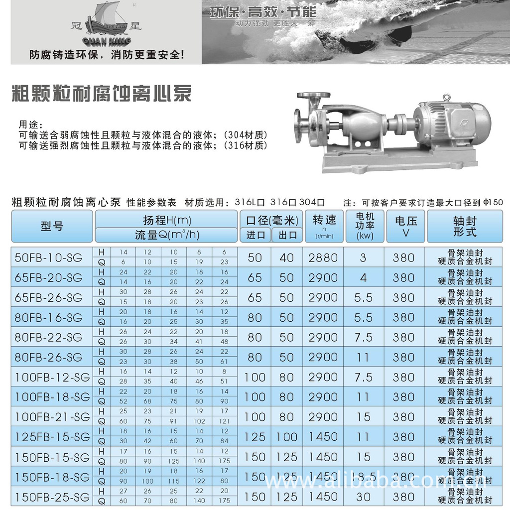 可输送强烈腐蚀性且液体与颗粒混合的液体:316不锈钢材质。